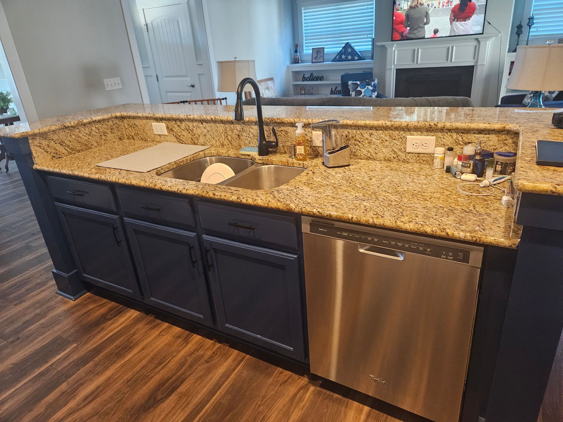 This was a beautiful renovation in the Porter's Neck area that brought to life the outdated colors and feel of this open space kitchen. Included was a full demo/rebuild of existing island. We went with larger single slab flat quartz countertops with new island cabinets and enclosure. The backsplash was also replaced to really tie the blue and stainless into the counters. New appliances were also installed including a dual fuel oven/range.