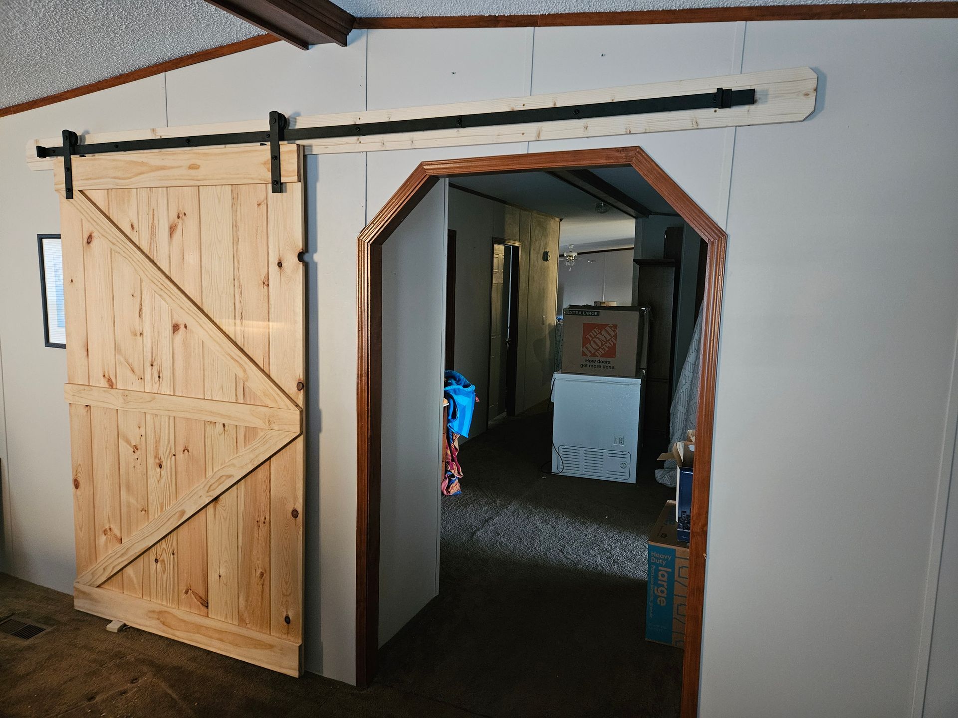Tired of builders grade mirrors/sinks and boring sheet rock walls in your living spaces? Add some hardware to cabinets and drawers, make your home beautiful and functional at the same time. Replace that awful wire rack in laundry and closets, and add some custom cabinetry. Are your doors boring? Add barn-style doors, we can install pre-manfactured kits or custom made to your specifications.